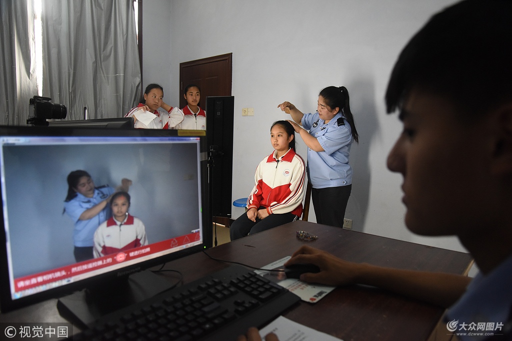 2018年5月30日,山东临沂,沂南县公安局岸堤派出所户籍民警放弃午休时间,为参加中考的学生办理身份证。