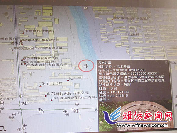 张玉丽 来源: 潍坊新闻网电子地图上,井盖的名称、位置、材质、主管部门等信息清晰可见。