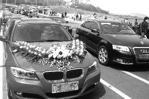 结婚是人生大喜之事,漂亮豪华的婚车车队必不可少。可是租一辆名车花费不低,要凑齐一个车队更不容易。近年来,很多新人选择“套装车队”,用同一品牌、型号、颜色的汽车组成。随着私家车数量的增多,不少私家车主也加入其中,甚至成为主力。