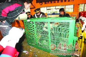 本报记者 赵金阳 摄现身就引来人们围观 两只大熊猫刚在机场货运站