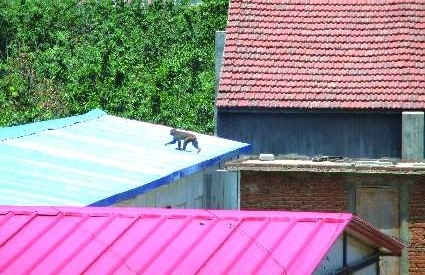 猴子在居民家中的房顶上活动。 李先生 摄 |