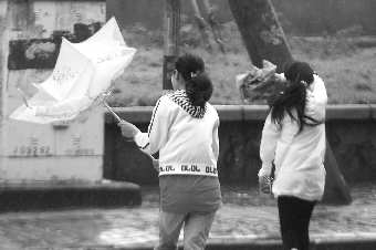 本报记者 赵金阳 摄雨伞无法承受台风的力量行人的雨伞转眼就被刮坏
