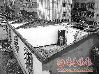 “轰的一声,那动静可大了,对面十几层楼上都听得清清楚楚。”住在30号楼上的苗女士告诉记者,26日下午5点钟左右,她正在阳台上做饭,忽然听见一声巨响,接着看到一些塑料泡沫漫天飞舞。“我跑到那边一看,才发现那平房的整个屋顶都被风揭了下来。”苗女士说,屋顶当时砸在停放在南侧的两辆轿车上,其中一辆轿车的挡风玻璃被砸碎,车顶也被砸塌。