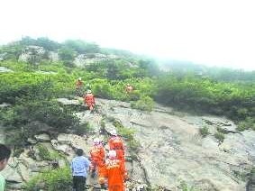 6月29日,招远一名男子在罗山森林公园内捡金矿石,不慎从30米高的悬崖上摔下,多亏一丛荆棘挡了一下,男子摔落在距地面10米高左右的悬崖凹处,由于腰部受伤,他只能等待救援。