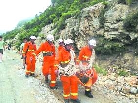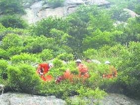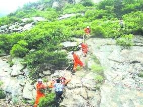 6月29日上午,招远市消防中队突然接到一个紧急命令:有一名男子从罗山森林公园30米高的山上坠落,目前这名男子正躺在距离地面10米高的悬崖一处凹处,马上行动救人。
