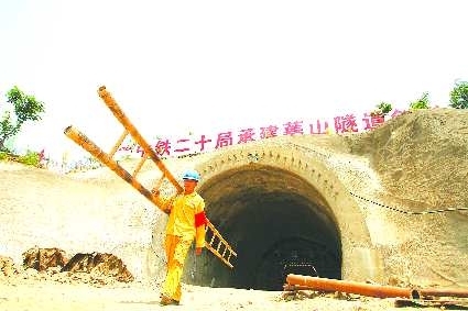 工人正在蓁山隧道斜井施工,这种斜井可以加快工程进度还可做应急通道。本报记者 赵金阳 摄