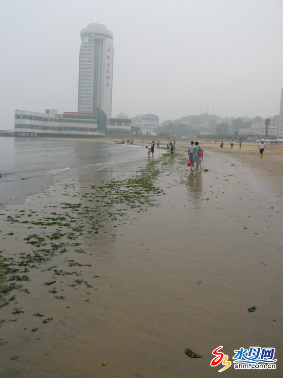 台风“梅花”已经过去,可台风的影响还没有结束。10日上午,烟台市民王先生拨打96110称,在烟台市区第一海水浴场处,有大量的海藻被海水冲上岸。记者在现场看到,第一海水浴场管理所的工作人员正在清理,据工作人员介绍,一上午大约清理了40吨的海藻。