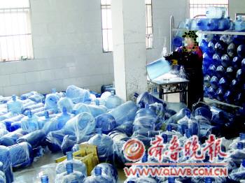 造假窝点工作人员正在洗桶。 通讯员 莫言 鹿洪彬 摄 |