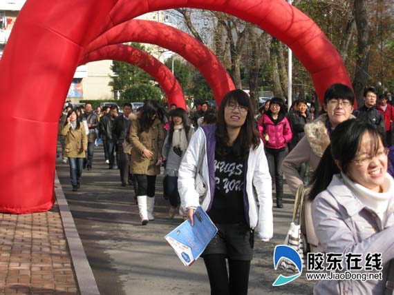 20日上午,在鲁东大学校园内,山东省半岛蓝色经济区招聘会暨鲁东大学毕业生供需见面会举行。据该校学生就业指导中心王全文主任介绍,此次是鲁东大学连续第三年承办省级招聘会,重点邀请了与半岛蓝色经济区发展战略相关的企业、行业及产业部门参会,包括潍坊、青岛、烟台、威海、淄博、大连、北京等省内外400余家大中型企业。