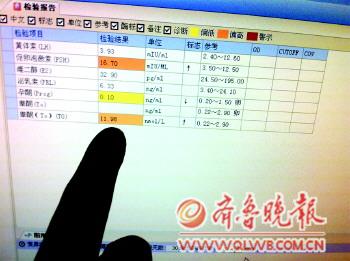 晓琳的诊断结果显示,体现男性激素和女性激素的项目都偏高。本报记者 孔雨童 摄