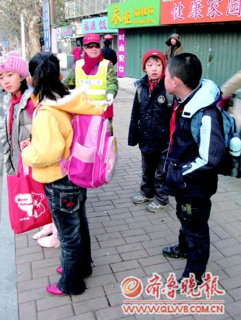 张春霞护送学生过马路。本报见习记者侯冬冬摄