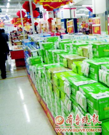 记者在几家超市分别逗留了约一个小时,在此期间,各家超市蒙牛牛奶销售区域算得上人迹罕至。