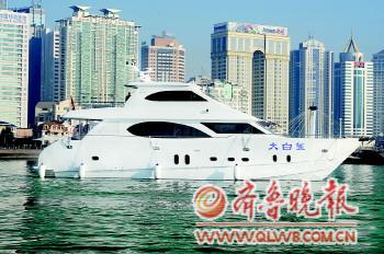 苗华茂 来源:齐鲁晚报航速可达20节的“大白鲨”豪华游艇。