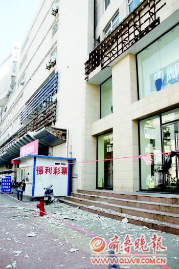 “当时我在店里,听见‘轰隆’一声,当时吓了一跳。”回忆起事发时的那一幕,在专卖店附近经营福利彩票投注站的王先生仍心有余悸,“幸亏没砸到行人,否则后果不堪设想。”王先生说,当时看见两名女子刚经过瓷砖掉落的地方,正走到自己的投注站外,看到瓷砖掉落,她们丢下手中的饭拔腿就往前跑,幸好没被砸到。