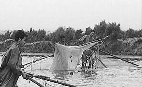 我见过几位上了年纪的渔民,光着膀子,古铜色的皮肤在烈日下闪着油光,两个人一组,身子稍微前倾,吃力地推着虾网,在港沟里艰难地向前走。捕捞蠓子虾的网很细密,用两根杆撑着,每人把着一根杆,顺着港沟向前推着走,就把港沟里的蠓子虾拦在网里,渔民称之为推虾。