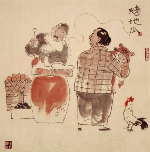地瓜,北京人叫它“红薯”,南方人称它“红苕”,学名是“甘薯”。烤地瓜是济南的地方小吃,和全国各地相比,济南的烤地瓜应该说质量是上乘的。从济南出去侨居国外多年的华人,一旦回故乡来,总不忘串街走巷买一块烤地瓜吃,烤地瓜会勾起他们童年的回忆。烤地瓜的炉子要用焦炭细火,不可烤煳,讲究现烤现卖,吃刚出炉的最好。烤地瓜的香味能飘很远,是种挡不住的诱惑,用句现代人的话:“超好吃!”